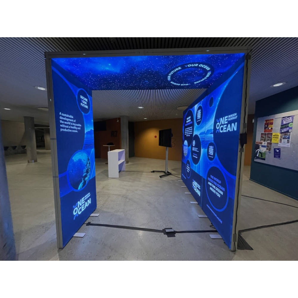 Prisene har kommet betraktelig ned på disse slik at mange benytter de i stedet for rolluper og tradisjonelle bakvegger. Sett f.eks 3 stk inntil hverandre så har du en flott messevegg.